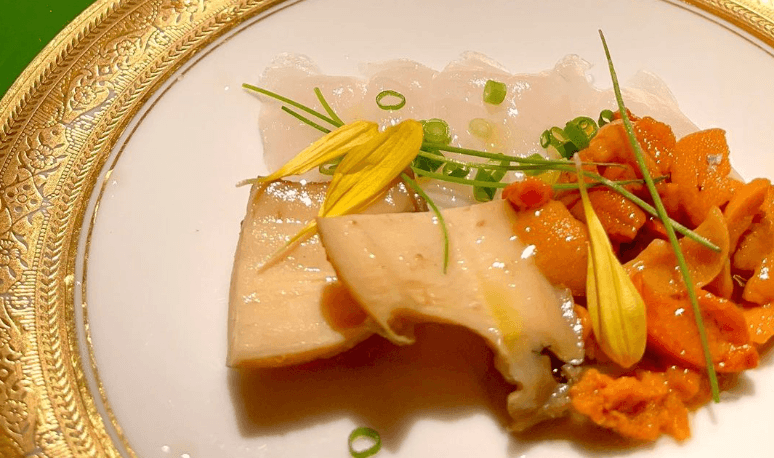 [Dinner] Softshell turtle course with liver sashimi
